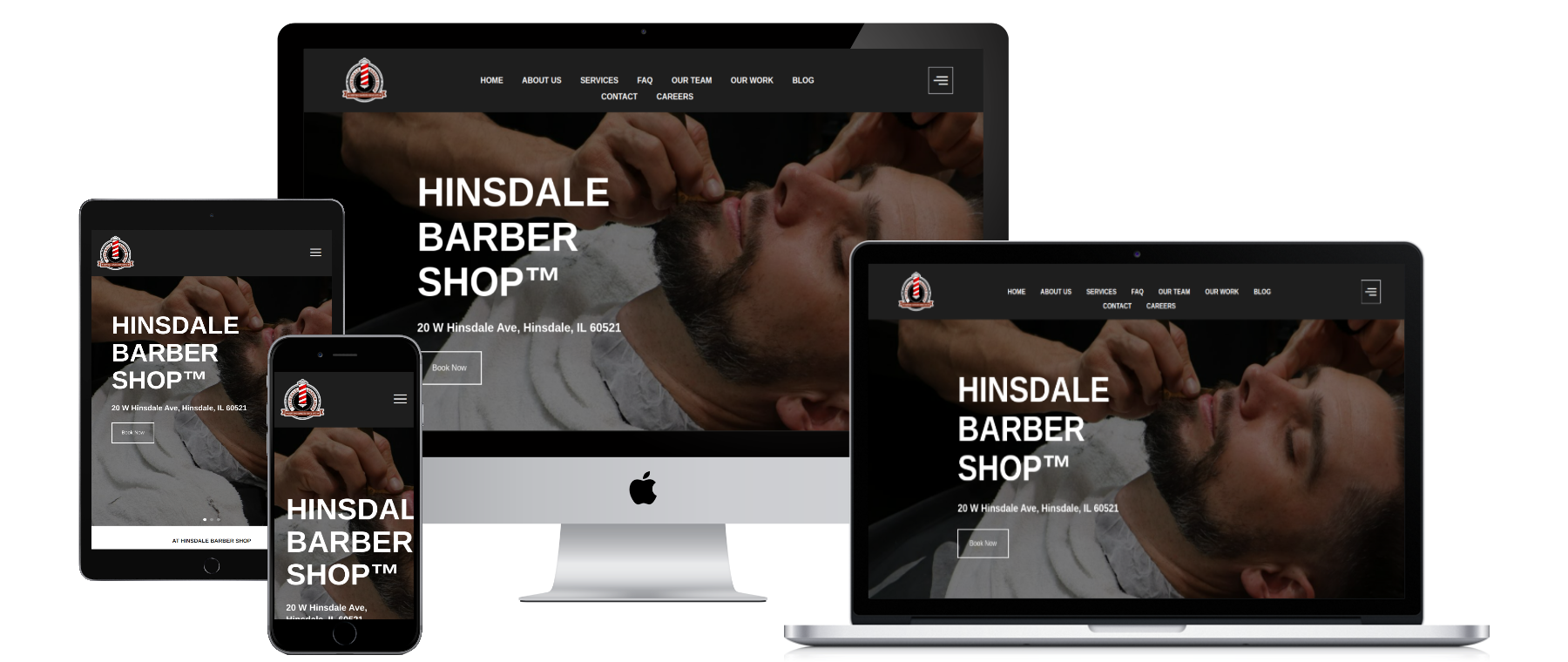 Hinsdale Barber Shop has been a trusted client for years, and when it came time for a digital refresh, they turned to us once again. While their original website had served them well, it was time to modernize the design, improve performance, and add functionality that would support both their brand presence and future growth — including a dedicated space for hiring.