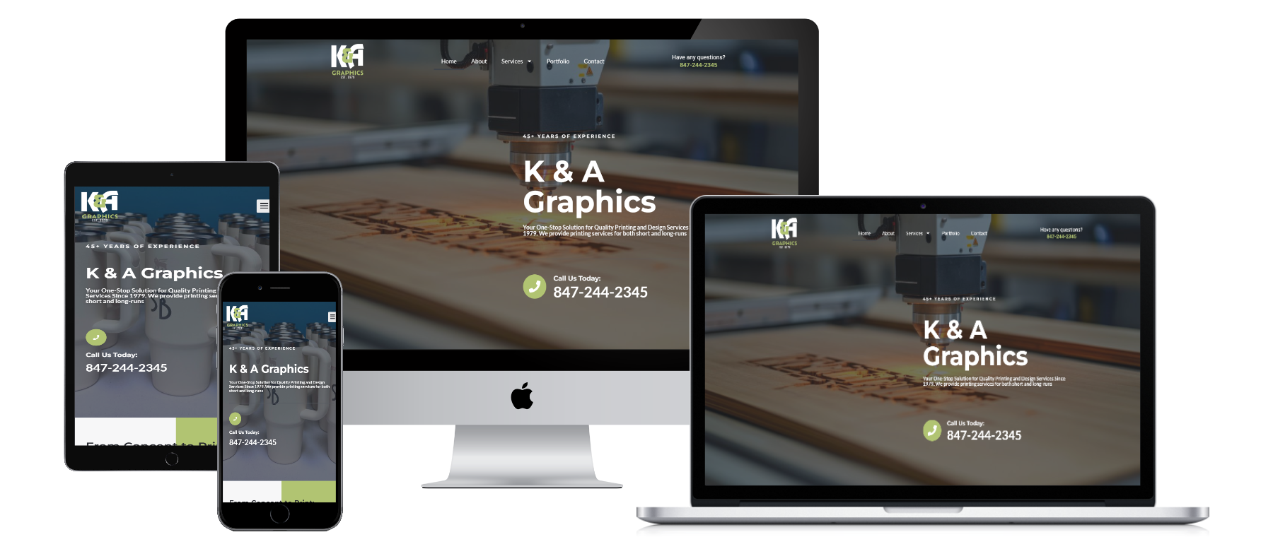 K & A Graphics needed a complete rebuild of their outdated website, which previously had minimal content and few images. The site lacked a clear narrative, visual appeal, and did not effectively showcase their impressive product offerings.